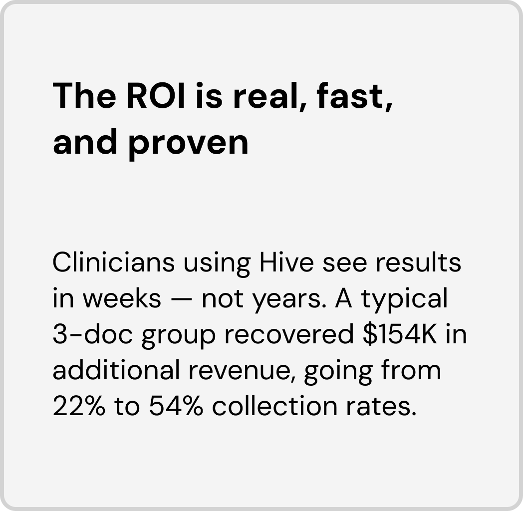 We’re transforming how clinicians get paid — with a 5:1 return and a clear path to scale. Learn more about who we are, the problem we’re solving, and how you can get involved.